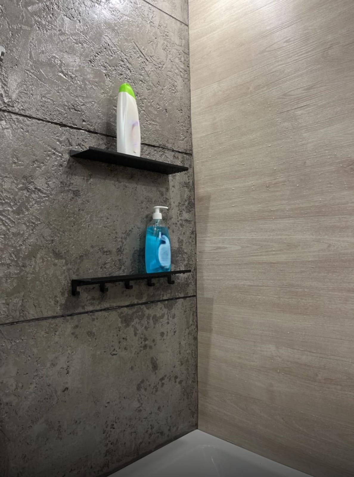 6. رف جداري متعدد الاستخدامات مزود بـ عَلاقات لتعليق الفوط أو الإكسسوارات.