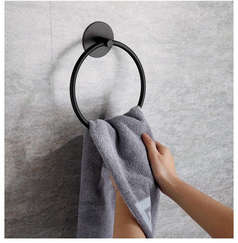 فواطة حلقة دائرية أنيقة، مصنوعة من ستانلس ستيل 304 المقاوم للصدأ والرطوبة. تصميم عصري بسيط يوفر طريقة عملية لتعليق المناشف ويضيف لمسة جمالية إلى الحمام.